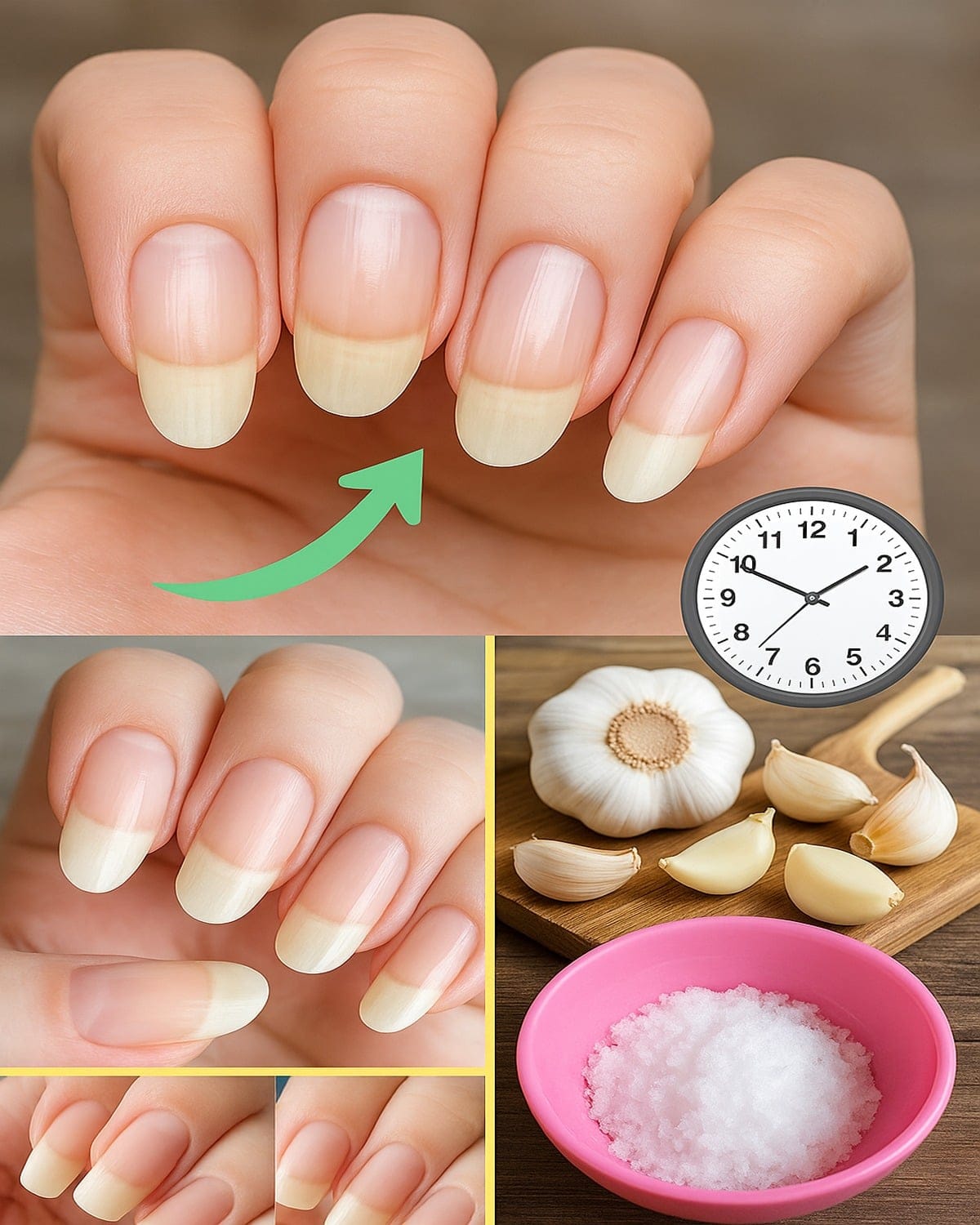 L’image montre parfaitement le résultat : des ongles plus longs, plus clairs et renforcés grâce à un soin maison rapide. Voici comment utiliser l’ail pour transformer vos ongles en quelques minutes par jour.