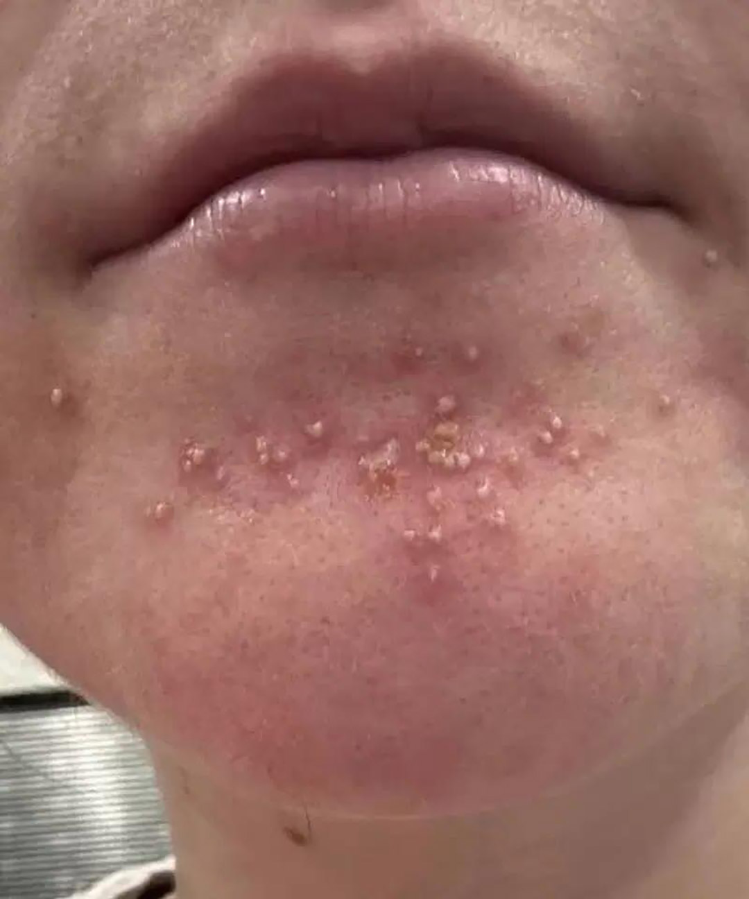 D’où viennent ces imperfections localisées sur le menton ?