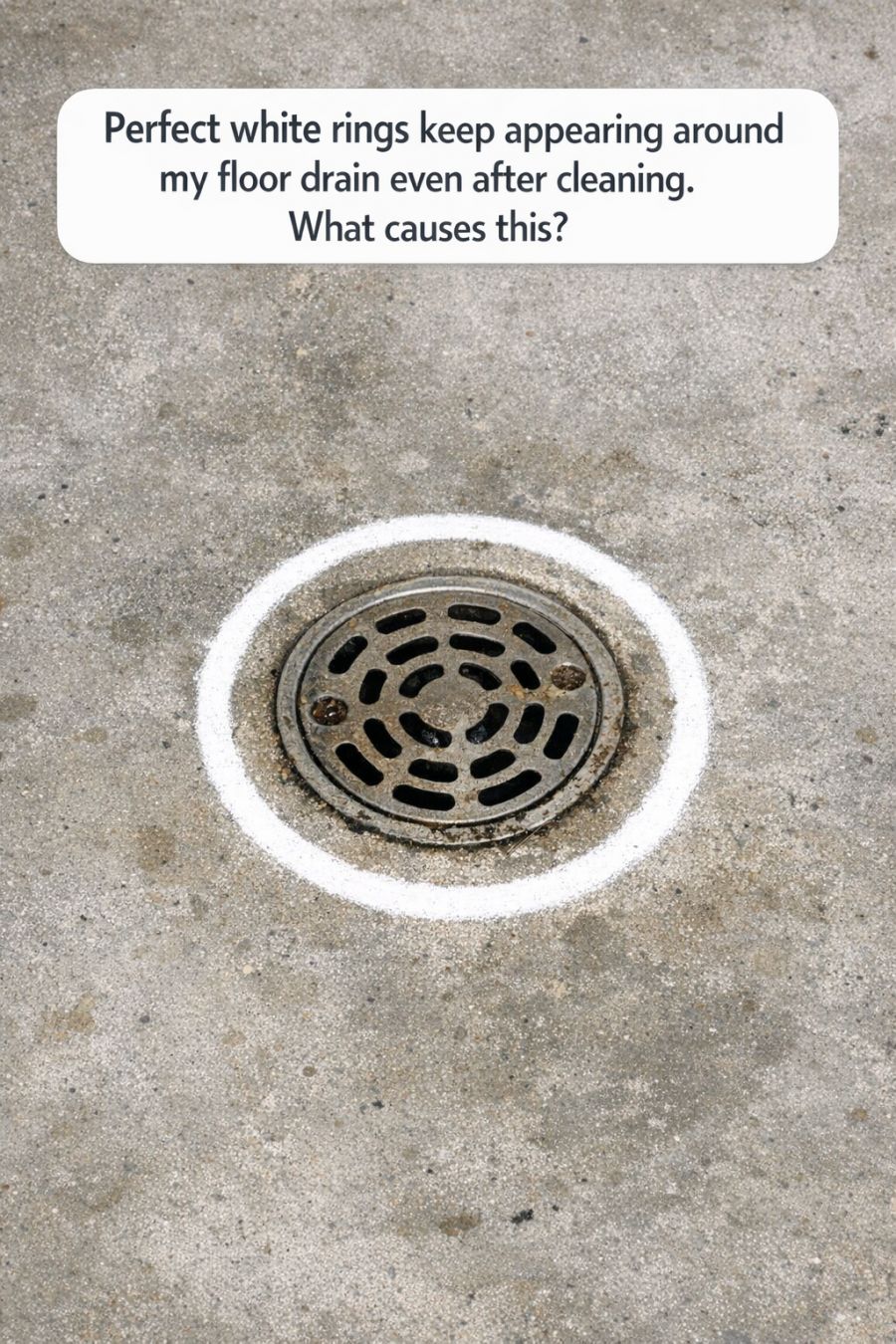 Perfect white rings keep appearing around my floor drain even after cleaning. What causes this?